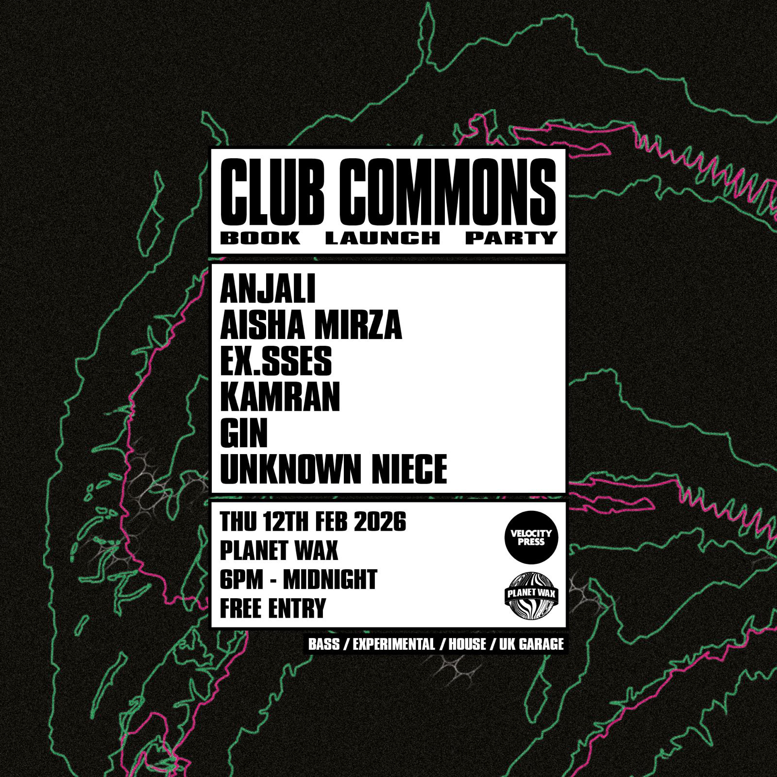 Planet Wax, February 12th, 6pm-midnight - Please come celebrate the launch of my first book Club Commons with a couple of gorgeous DJs, pals and folk who feature in the book xxx